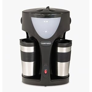 Toastess TFC-42T Silhouette 800-Watt Twin Coffeemaker with 2 Thermal Travel Mugs